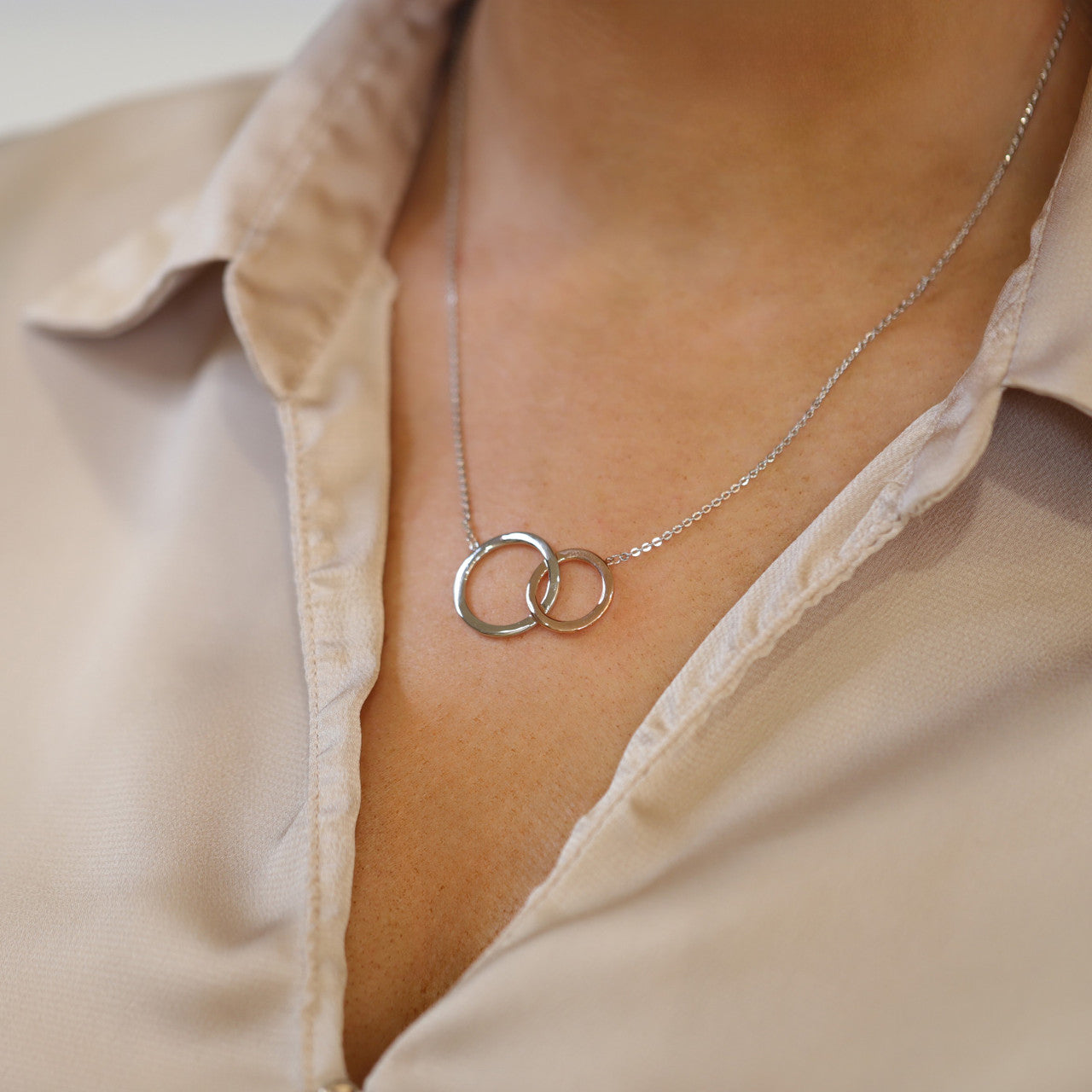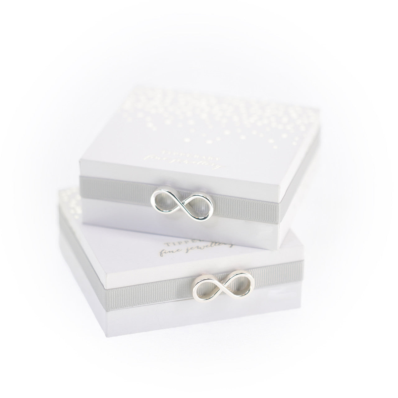 Celebrate your relationship with the Tipperary Crystal Interlocking Circles Pendant that symbolise your love forever. Created in sleek silver and romantic rose gold, this design combines two open circles linked together in an everlasting embrace and centred along lengths of highly polished cable chain. A great look any time, this chic pendant secures with a lobster claw and has a 2” extension chain and TC branded fob. The chain length is 40 c m plus a 5 cm extension chain. It comes presented in a beautiful gift box with ribbon. Shop jewelIeries online at Foys today and let this meaningful pendant shine.