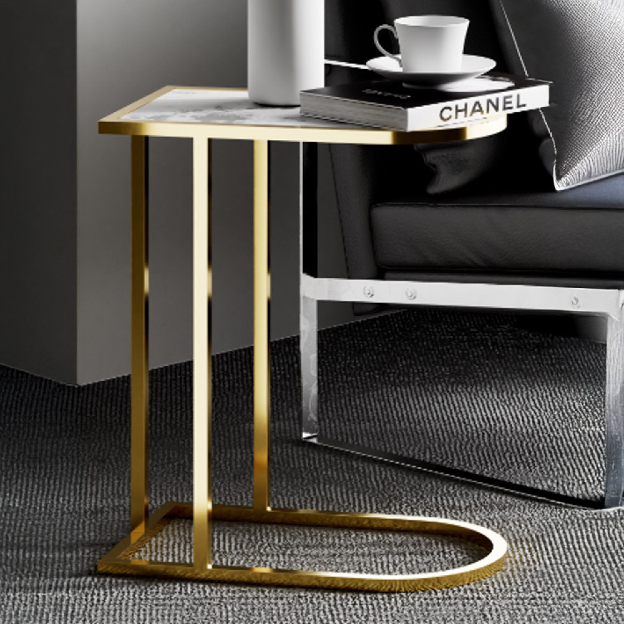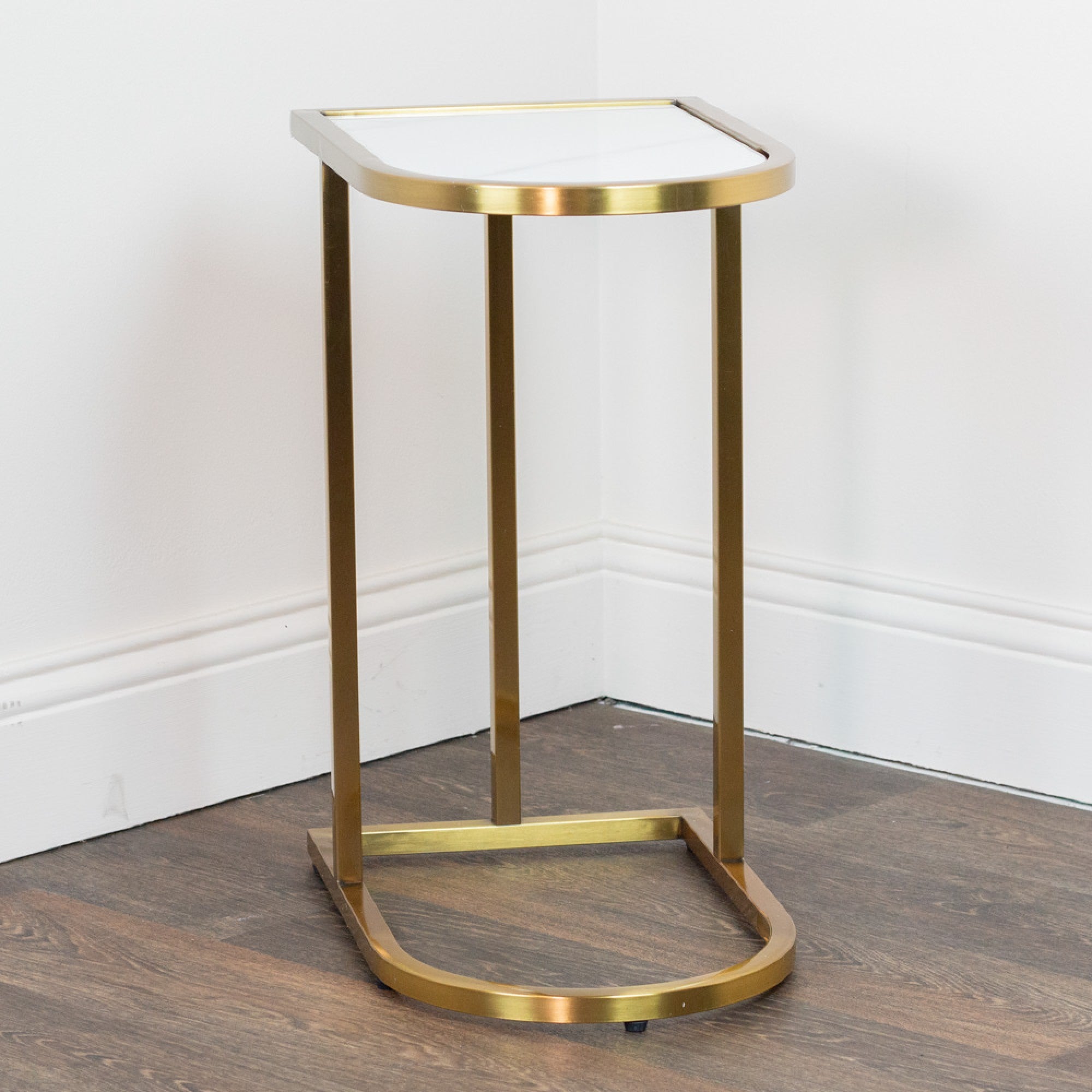This side table is both luxurious and useful, and it was made with care. The robust metal base with a polished gold finish adds a bit of glitz while still providing structural stability. This vital piece of living room furniture improves both form and function, whether it's next to a sofa or stylized as a stylish console.