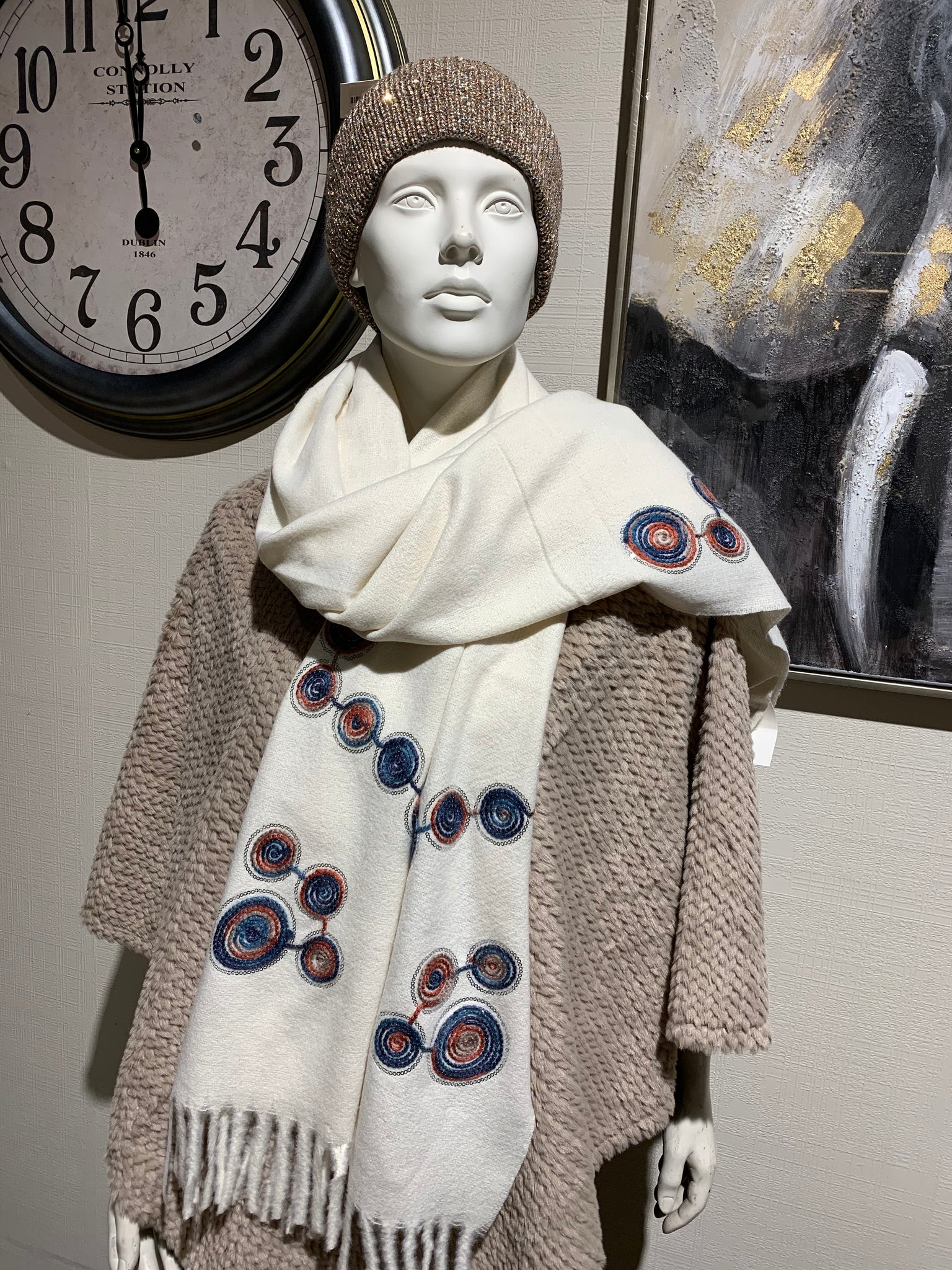 White Embroidered Scarf – Soft Fringe Gift for Her